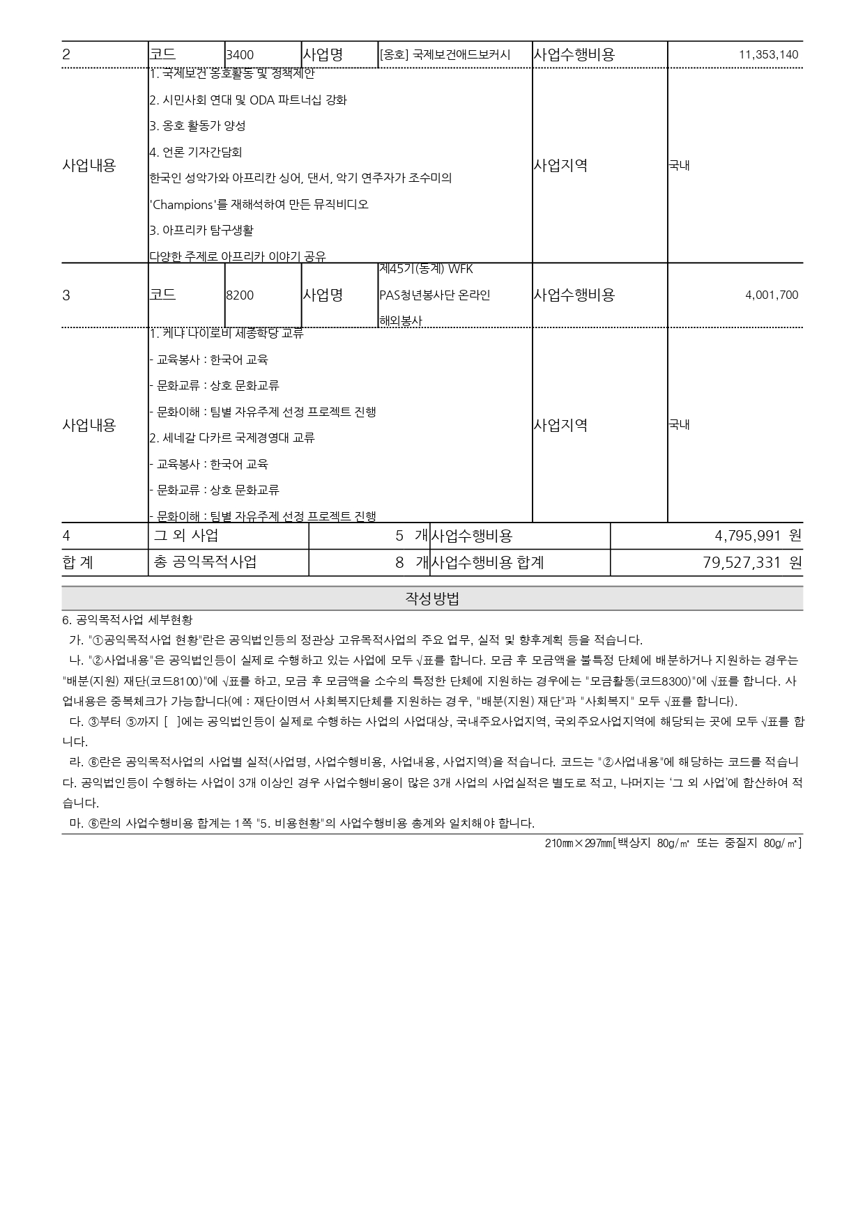 「상속세 및 증여세법 시행령」 제50조 제3항 또는 제43조 제5항에 따라 공익법인 결산서류 등을 공시합니다. 사단법인 아프리카인사이트는 10월말 결산법인으로 2021년 11월~2021년 12월 결산서류를 공시합니다. 2021년 10월 사업연도 종료 후 12월말 결산법인으로 사업연도를 변경하여 2022년부터 해당년도의 결산서류를 게시할 예정입니다. 본 자료는 국세청 홈택스 ‘공익법인 결산서류 공시’에서도 조회하실 수 있습니다. 첨부: 공익법인 결산서류 등의 공시(2021.11-2021.12) Post Views: 207