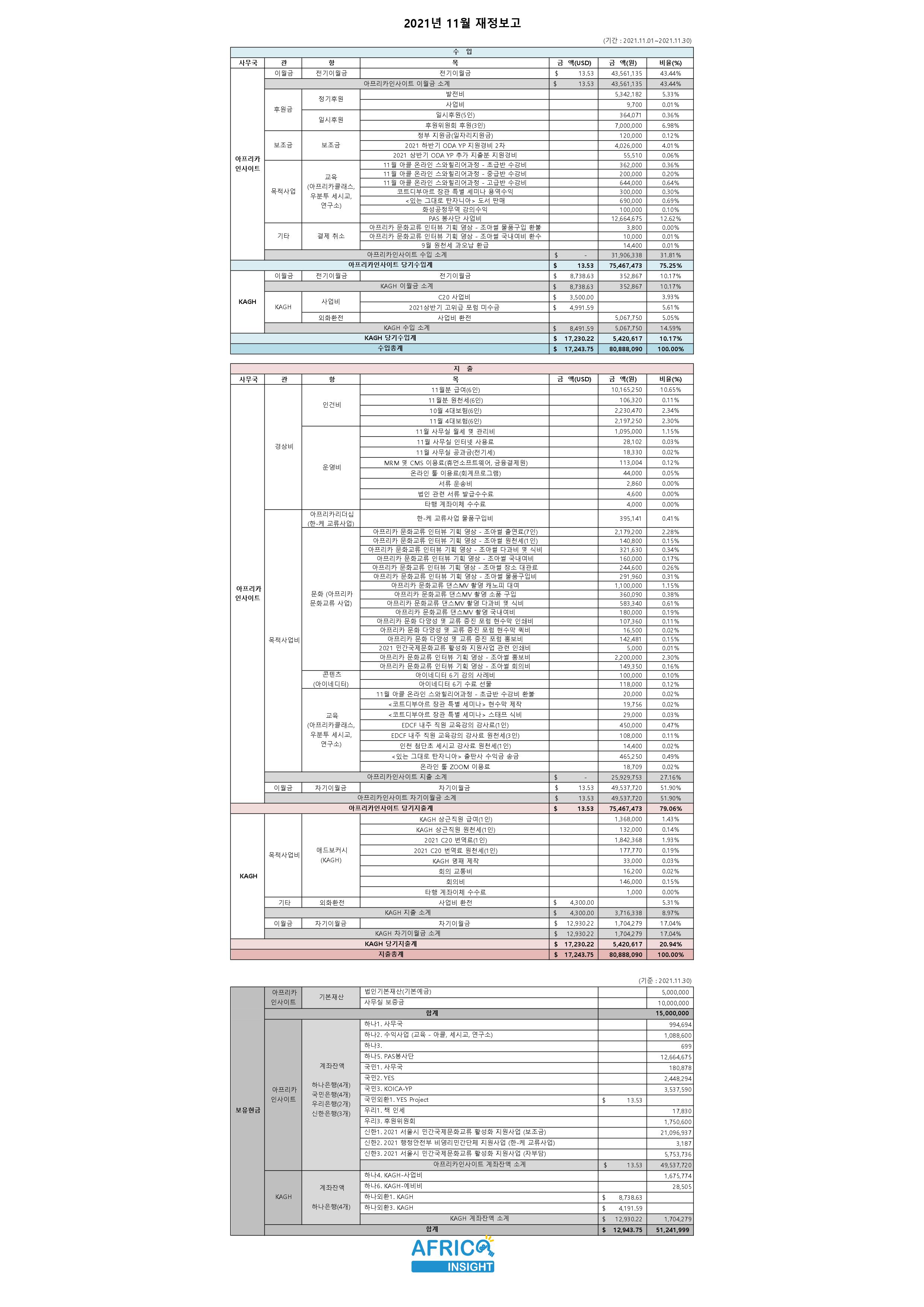 2021년 11월 재정보고