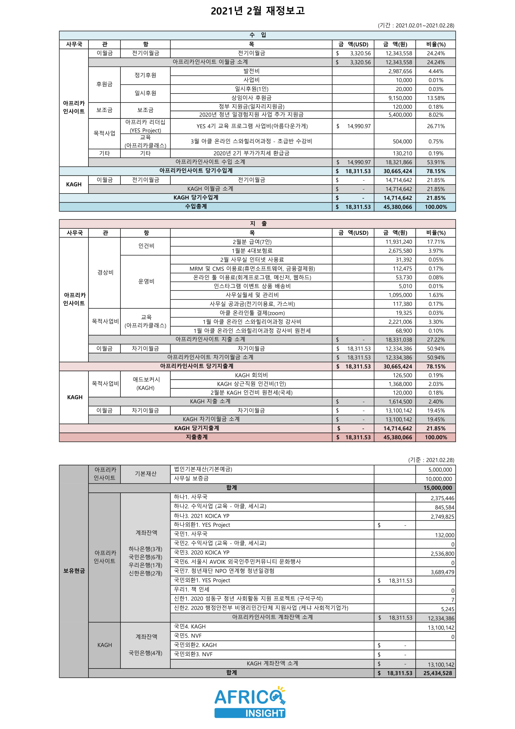 2021년 02월 재정보고