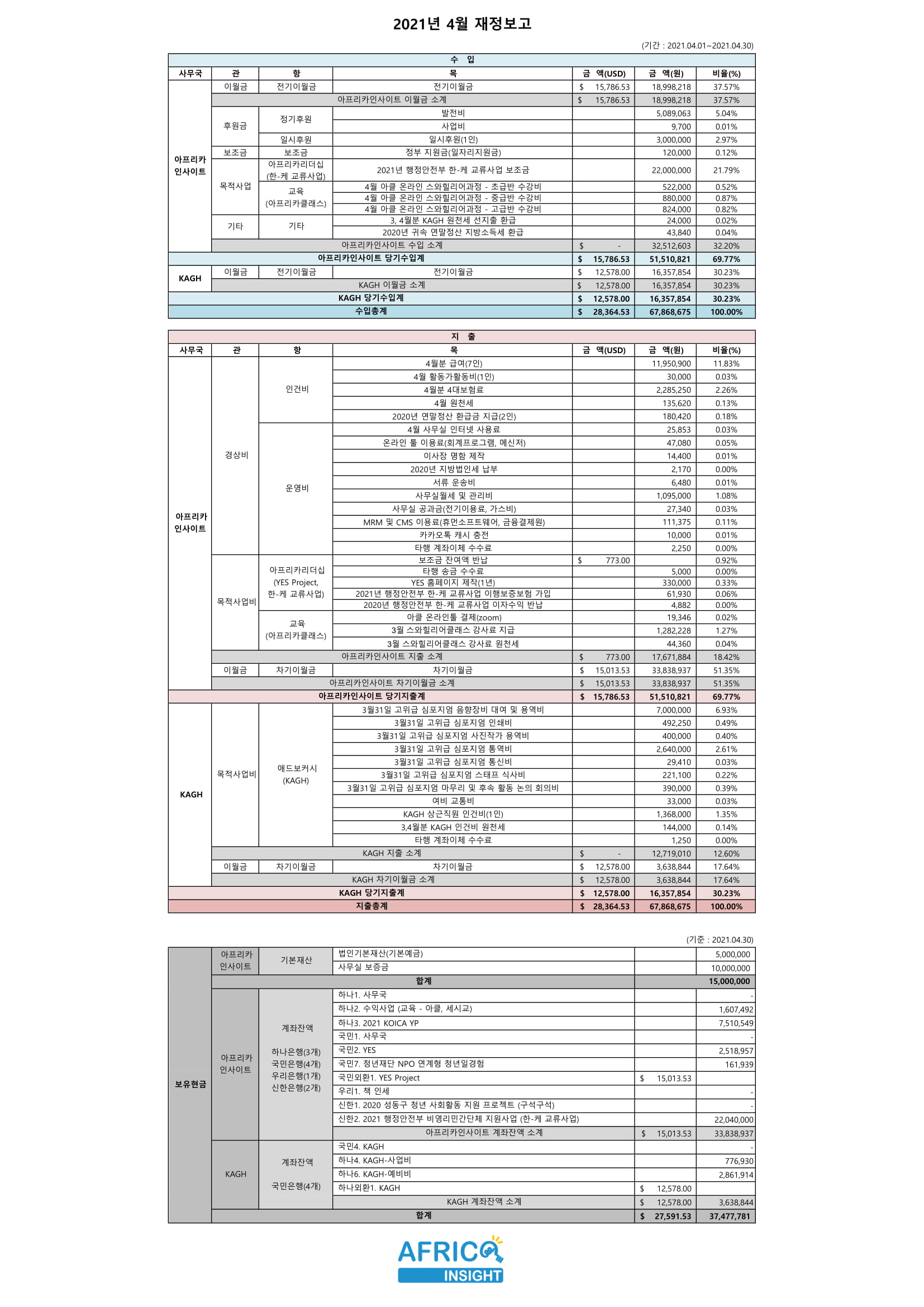 2021년 04월 재정보고