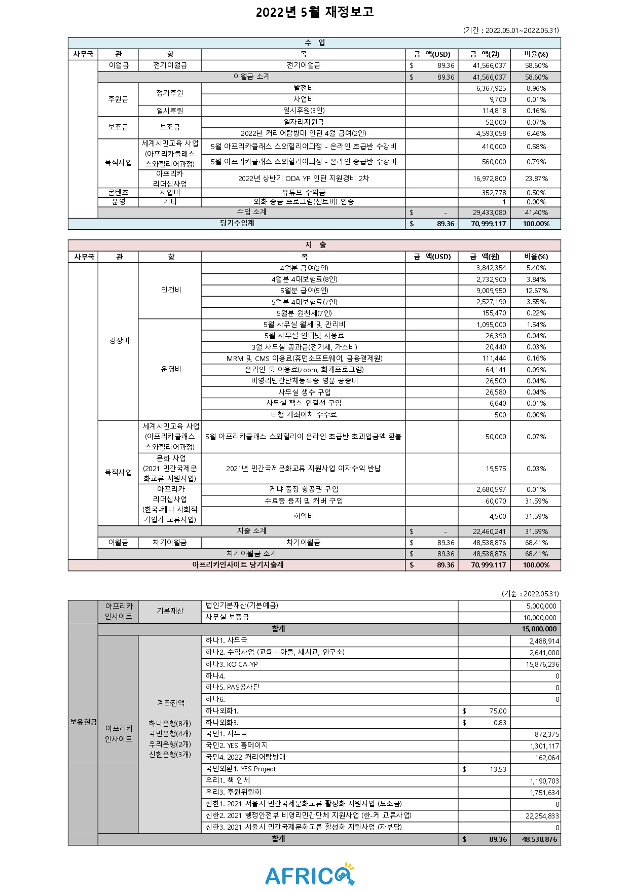 2022년 5월 재정보고